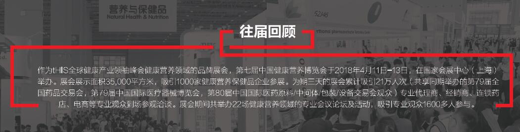 亚洲颇具规模的健康营养领域专业展会,汇聚众多国内外领军品牌参展,吸引优质渠道商、零售终端前来采购洽谈,成为健康产品首选发布平台和行业专业人士不容错过的顶级盛会。
