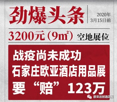 其实欧亚在此刻所做出的决定并非受形势所迫被动“赔”,而是带领行业企业突破僵局主动“赔”。从“1.23”武汉封城,再到现在石家庄欧亚酒店用品展拿出“1.23”百万诚意,赔给酒店用品行业。了解欧亚的人都知道欧亚展览在总经理王树云的领导下,一直都以爱党爱国、为行业发展、为企业生存而努力。虽然疫情阻断了许多企业向前迈进的道路,但欧亚愿意为社会贡献一份力,为企业赢得一次机遇。