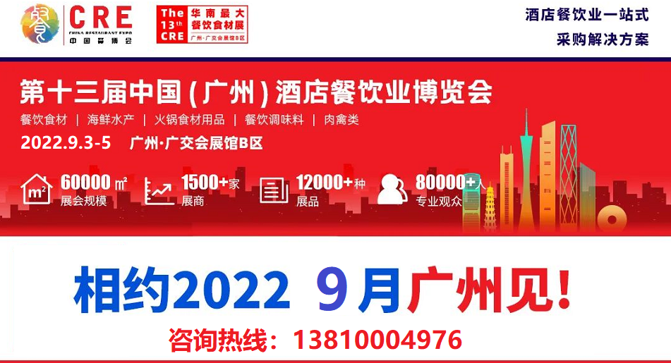 2022第13届CRE中国(广州)酒店餐饮业博览会(简称CRE中国餐博会)