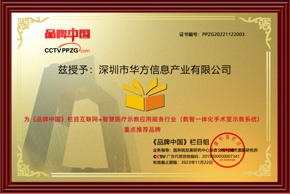 华方信息秉承着勇于创新,追求卓越的创新理念,在互联网+智慧医疗示教应用服务行业细分领域中解决了手术中的示教问题,突破传统远程示教传导感知薄弱等难点,补充市场对超高清手术直播与示教一体化应用的短板。该系统带给客户一种一体化的集成控制服务环境,实现数字化手术室示教系统建设和应用,有效满足低带宽传输,稳定、连续、流畅、高图像质量的网络视频需求,以及手术观摩学习,专家会诊、远程指导等多种视频应用需求,实现医院数字化手术室规范化管理同时摆脱传统示教模式在时间、空间、人数及安全性上的限制。华方信息的数智一体化手术室示教系统在全国互联网+智慧医疗示教应用服务行业中的2021、2022年市场占比分别约16%、19%,并获得《品牌中国》栏目的重点推荐。