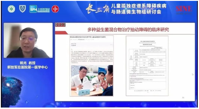 解放军总医院第一医学中心的杨光教授在《自闭症与饮食和肠道的关系》主题分享中为大家介绍了孤独症与肠道的关系,并分别为大家介绍了无麸质蛋白饮食、生酮饮食、复合益生菌补充等方式对自闭症、多动症儿童的肠道干预情况。