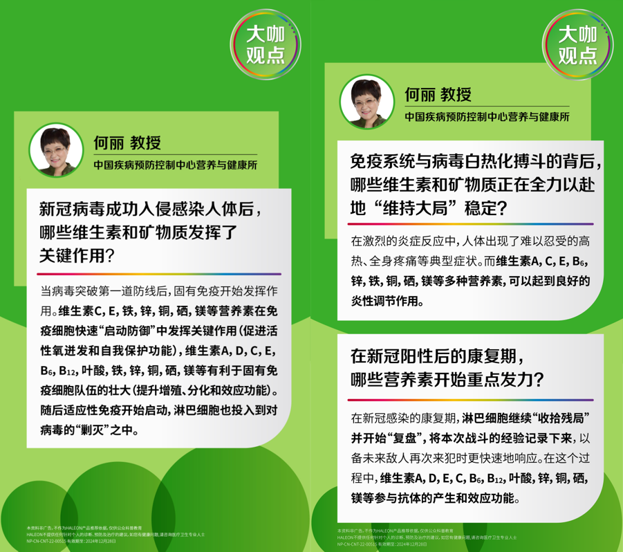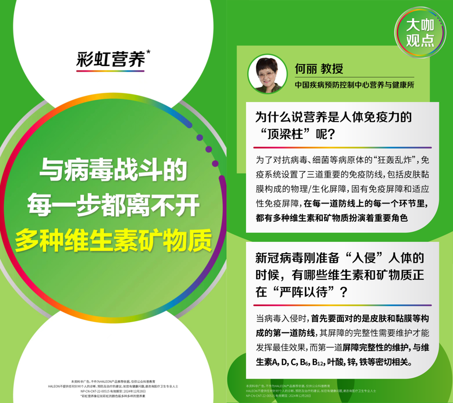 2023复工第一周,第一批“阳康”陆续返回正常工作岗位,全国抗疫形势渐渐走上了“保健康、促恢复”的新轨道。感染后怎样调节身体技能,争取快速复原?转阴后如何加固抵抗力,避免二次感染?中国疾控中心营养与健康所何丽教授详细介绍了新冠治疗与营养补充的关系,原来与病毒战斗的每一步都离不开多种维生素矿物质。