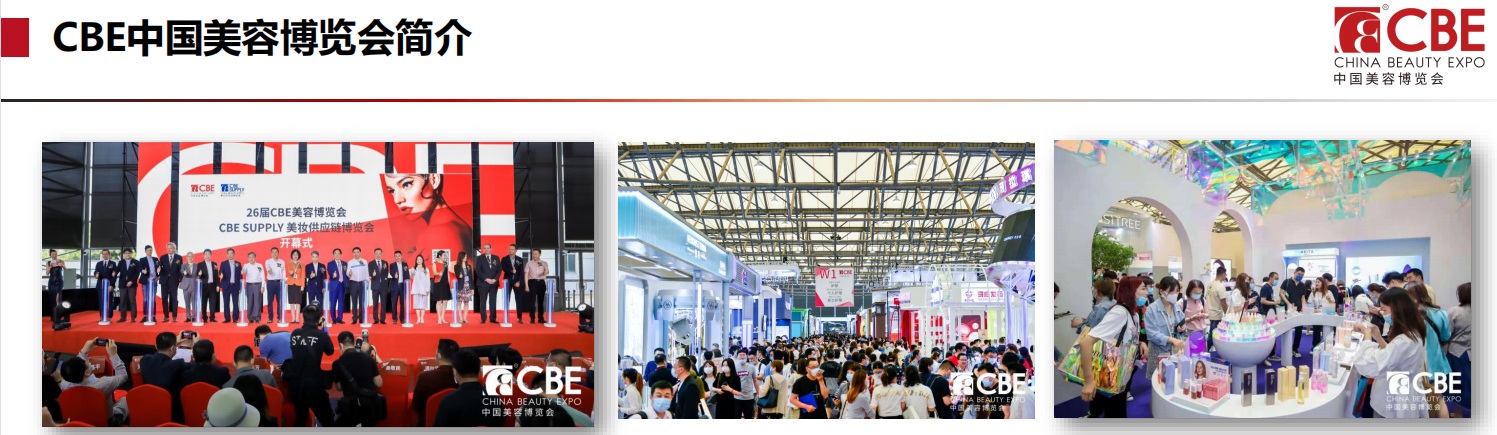 中国美容博览会(上海CBE)是亚洲区域内首屈一指的美容行业贸易盛会,也是众多业界人士开拓中国市场乃至亚洲美容行业的不二之选。上海CBE包含四大主题展——化妆品展、专业美容展、日化技术展和原料配方展,并与成都美博会跨区域联动,携全国多地及海外各国共十余场巡展,打造全年不间断的深入宣传和布局。中国美容博览会旨在搭建美容化妆品行业及覆盖上下游产业的全品类细分商贸平台,汇聚全渠道买家采购商和研发,为其提供资讯交流、贸易洽谈、行业解决方案等一站式服务。