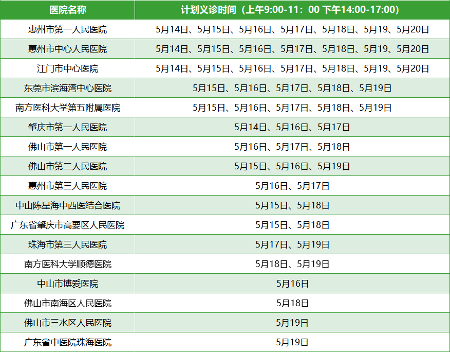 义诊时间:2023年5月14-20日,每日上午9:00-11:00;下午14:00-17:00;