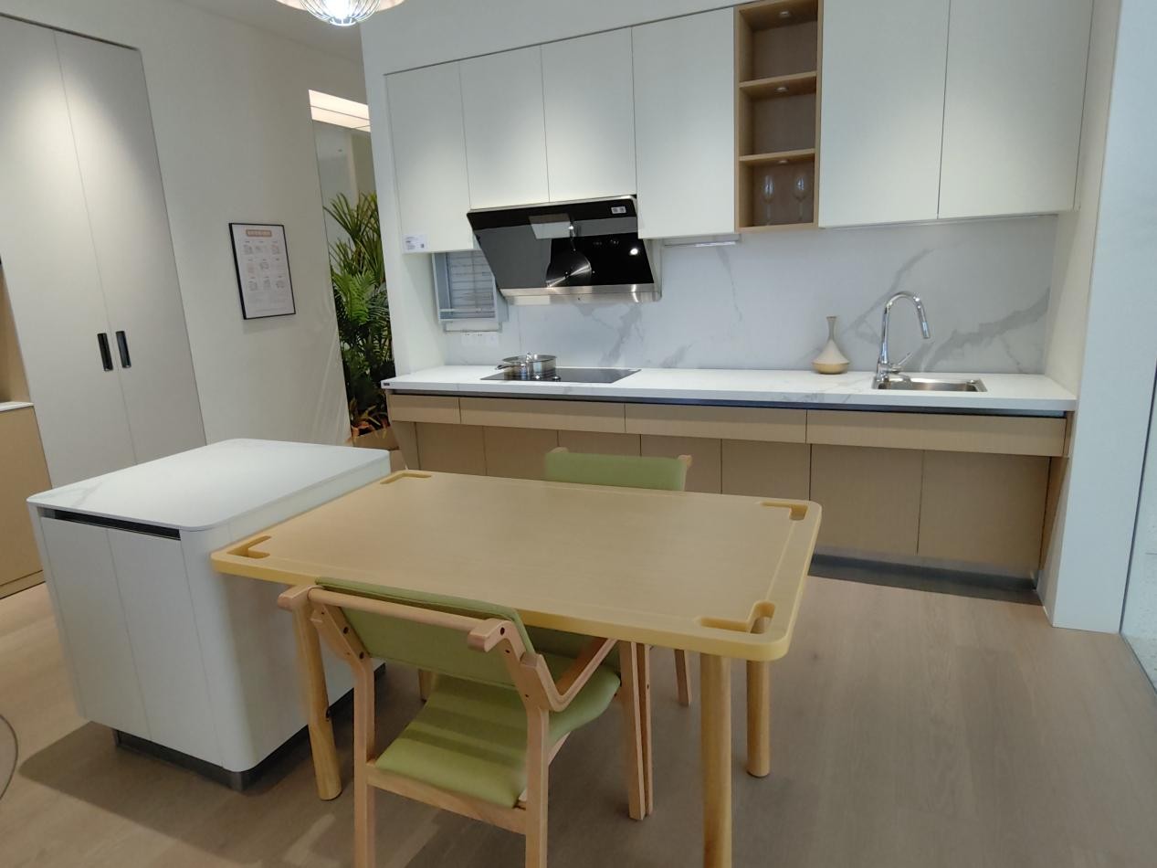 金牌|康小金充分考虑老年人生理适应能力,开放式橱柜为老人打造容腿地柜设计,坐着也能轻松下厨,升降式的厨柜拿取物品更方便;餐厅厨房一体化设计,让就餐更便捷,为老品质生活保驾护航。
