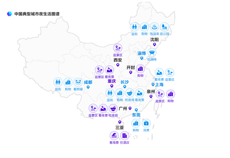 随着多元的消费业态不断丰富着居民的夜间生活,城市的夜间经济发展也开始表现出由不同业态驱动的特质,立足于本地文化特色,城市“夜态”不论是选择:以食兴夜、以游兴夜、以购兴夜、以娱兴夜,亦或是自由组合、百花齐放。只要抓住发展重心,构建完善产业链,打造城市夜经济品牌,都能够将其作为一张城市名片,成为城市传播出圈的有效途径。典型例子如因烟火气和人情味儿出圈的“淄博烧烤”、因历史风情和盛唐文明爆火的“西安大唐不夜城”还有著名的休闲之都成都,以及娱乐氛围浓厚的沈阳等等,都为城市夜间经济起到了促进的作用,提升了城市的吸引力和竞争力。