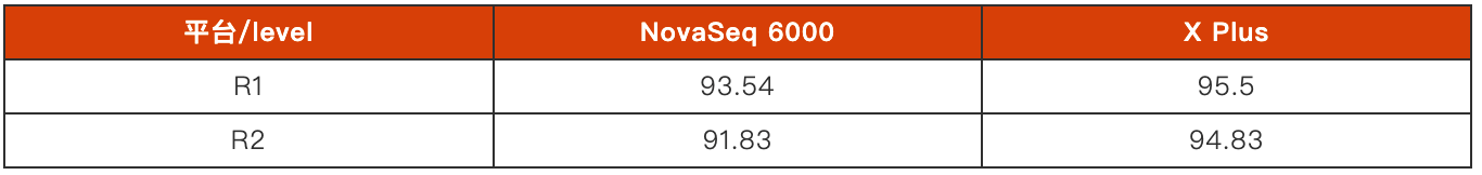 此外,受益于X Plus技术的提升,下机数据的Q30也得到了一定程度的提升。对于碱基平衡文库,X Plus在Q30上的表现也会更好。相较于NovaSeq 6000,X Plus在R1端和R2端的Q30更为接近,随着测序阶段的前进,Q30变化极小。