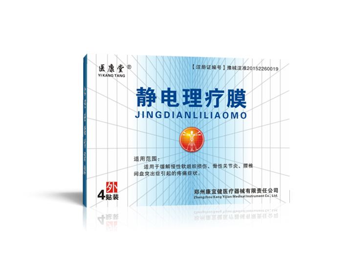 郑州康宜健生产的医康堂静电理疗膜主要是利用该产品中的驻极体所携带的高压负静电场在受损部位补充人体相匹配扥受损电位差,使细胞电位达到正常状态,恢复人体所需“生物电”,改善受损组织区域环境,使人体生物酶得以正常合成分解蛋白,促进小血管和毛细血管显著增生,加快血液循环和生物代谢,使人体固有自然治愈力机能得到提高,进而让人体受损组织得以恢复,达到治疗和减轻相应适应病症的物理性辅助治疗。