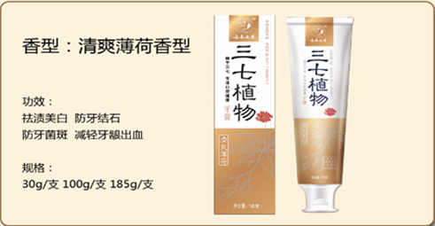 【产品名称】:三七植物牙膏(清爽型荷香型)
