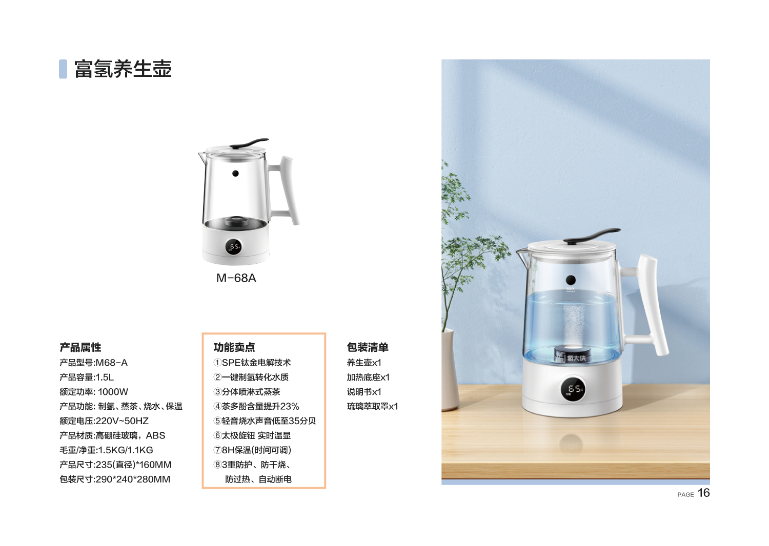 【产品名称】:富氢高浓度养生壶-M68 1.5L.