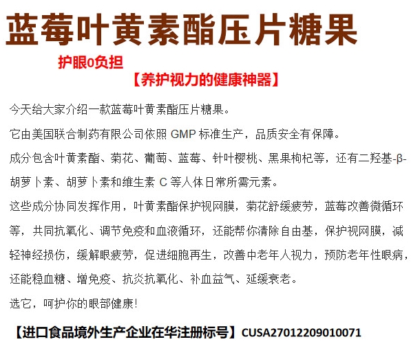 【产品名称】:蓝莓叶黄素酯 压片糖果 进口食品