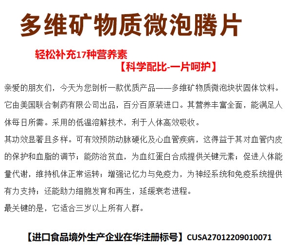 多维矿物质 微泡块状固体饮料 增强记忆力和免疫力,助于细胞发育和再生