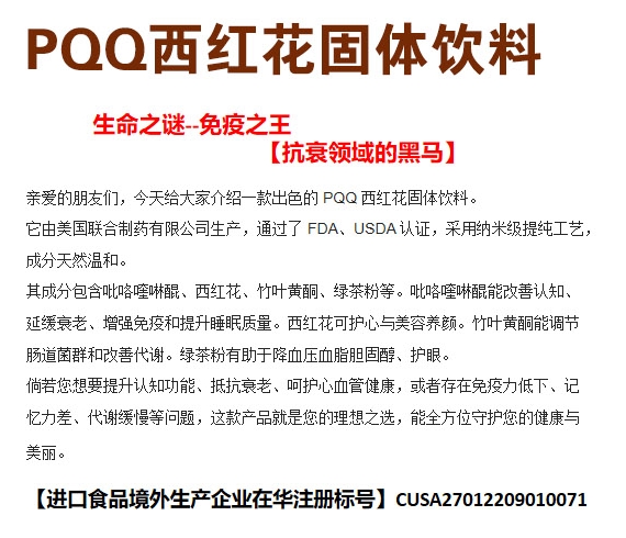 【产品名称】:PQQ西红花固体饮料 进口产品