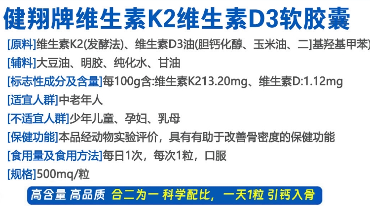 【产品名称】:健翔牌 维生素K2维生素D3软胶囊 私域