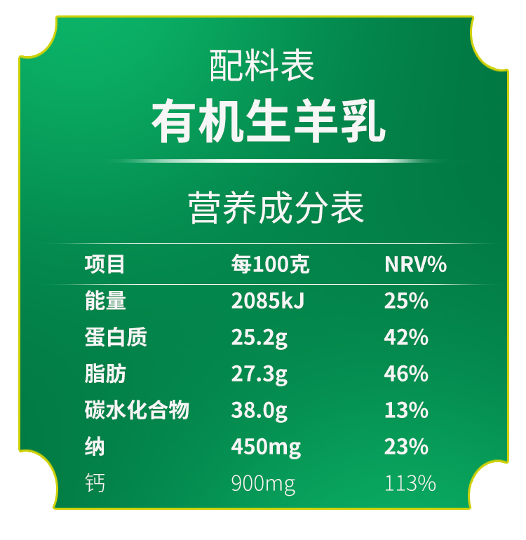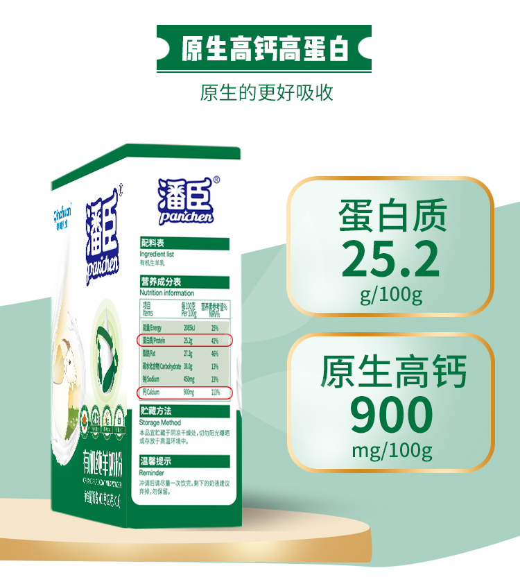 【产品名称】:潘臣有机纯羊奶粉