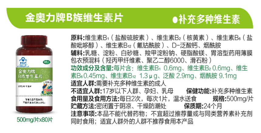 【产品名称】:金奥力牌多种B族维生素片